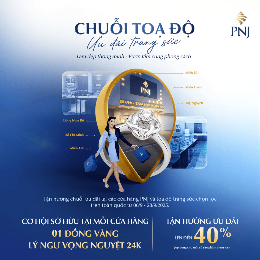Làm đẹp thông minh, vươn tầm cùng phong cách và tận hưởng loạt ưu đãi hấp dẫn từ 06/9 – 28/9/2025 tại các cửa hàng và tọa độ trang sức chọn lọc của PNJ ngay hôm nay!