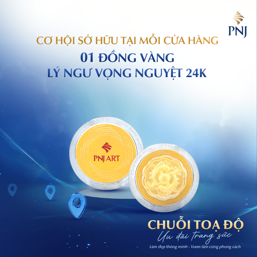 Khởi động chuỗi ưu đãi là chương trình CƠ HỘI SỞ HỮU ĐỒNG VÀNG 24K LÝ NGƯ VỌNG NGUYỆT. Cụ thể, khách hàng đạt có tổng giá trị hóa đơn cao nhất tại mỗi cửa hàng sẽ nhận ngay 01 Đồng Vàng 24K Lý Ngư Vọng Nguyệt. Đây cũng chính là món quà thay lời tri ân PNJ dành đến những khách hàng đã luôn dành trọn niềm tin cho thương hiệu.